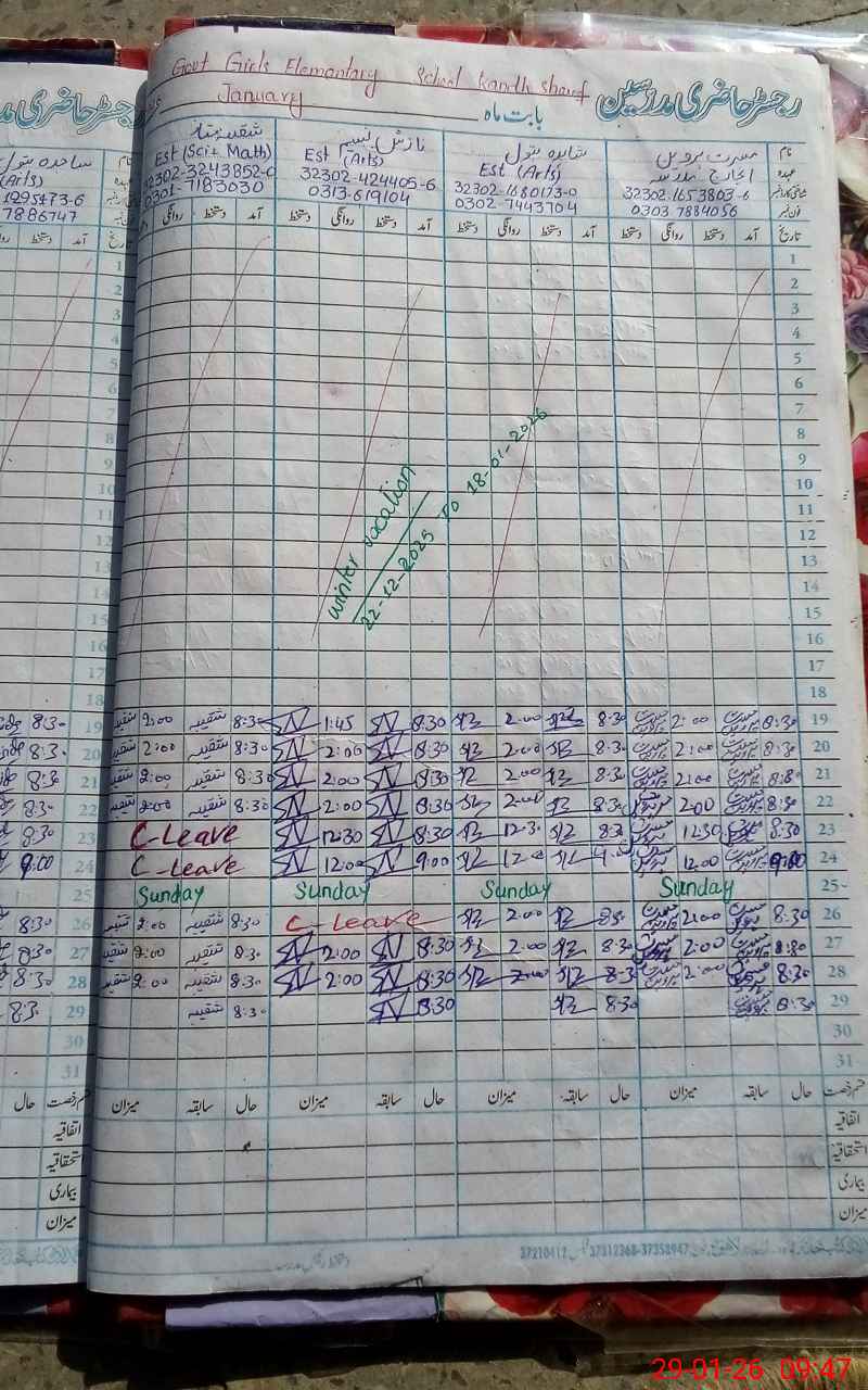 | District: MUZAFFARGARH | Tehsil: JATOI | Markaz: KANDH SHARIF- FEMALE | Level: Middle | |
