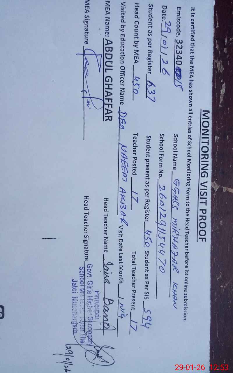 | EMIS Code: 32340015 | Name of School: GGHSS MIR HAZAR KHAN | |||