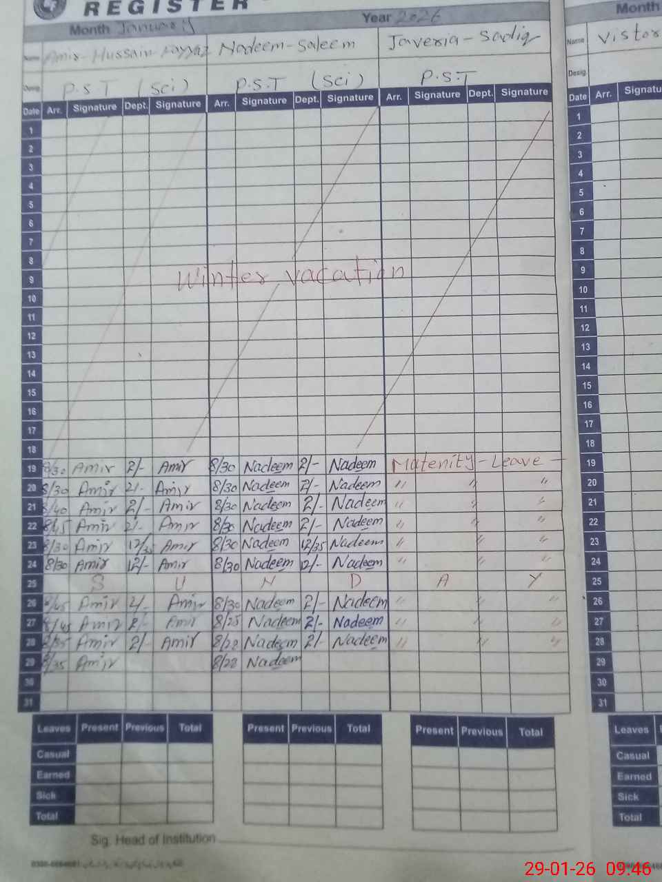 | 33**** | Ja**** Sa**** | PST Arts | Regular | 31 | 0 | 0 | 31 | 0 | 0 | 0 | 0 | 0 | Maternity |