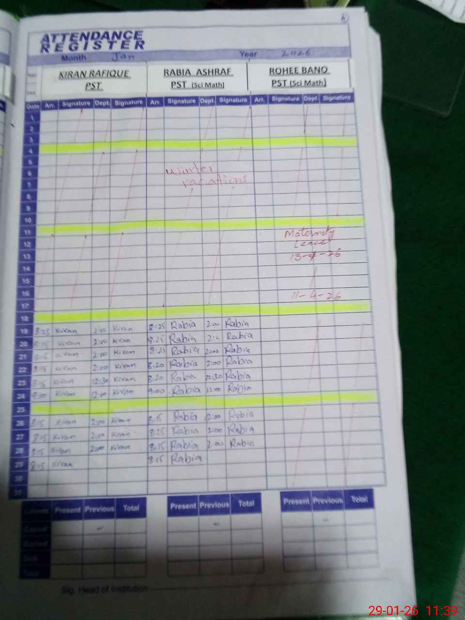 | 33**** | Ro**** Ba**** | PST Science/Maths | Regular | 0 | 0 | 0 | 0 | 0 | 0 | 0 | 0 | 0 | Maternity |