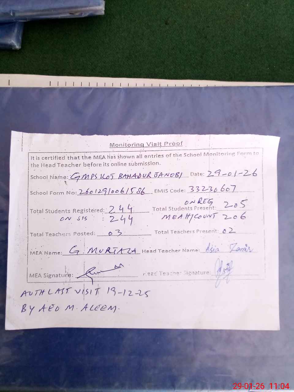 | EMIS Code: 33230607 | Name of School: GMPS KOT BAHADUR JANUBI | |||