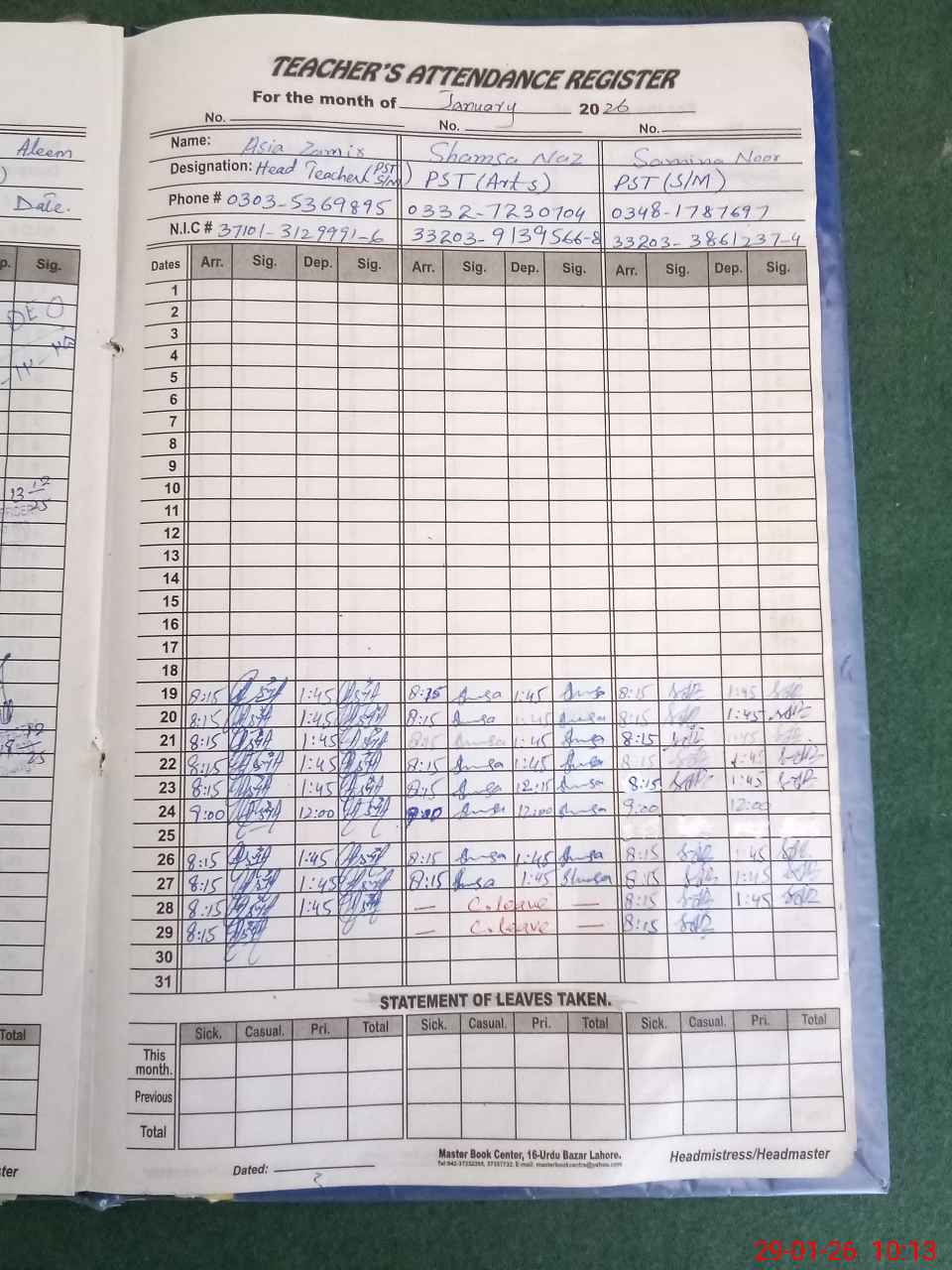 | Name: AS**** ZA**** Designation: (School Headmaster's/Headmistress's) PST Phone/Cell Number: 03**** |