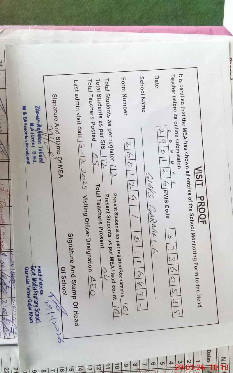 | EMIS Code: 37360535 | Name of School: GPS MODEL GARMALA | |||