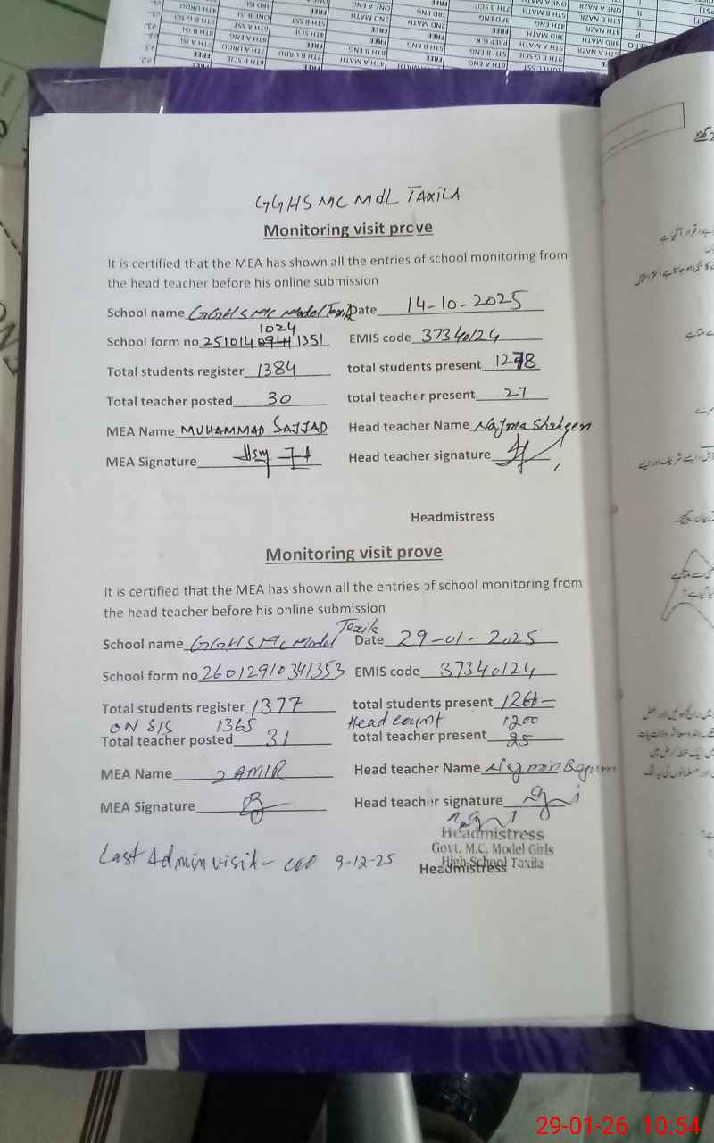 | EMIS Code: 37340124 | Name of School: GGHS MC MODEL TAXILA | |||