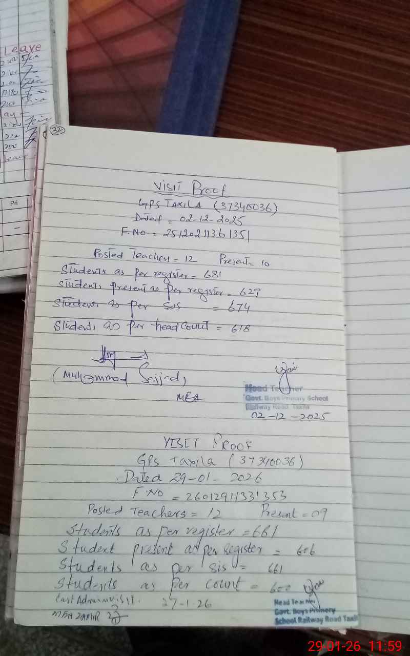| EMIS Code: 37340036 | Name of School: GPS TAXILA | |||
