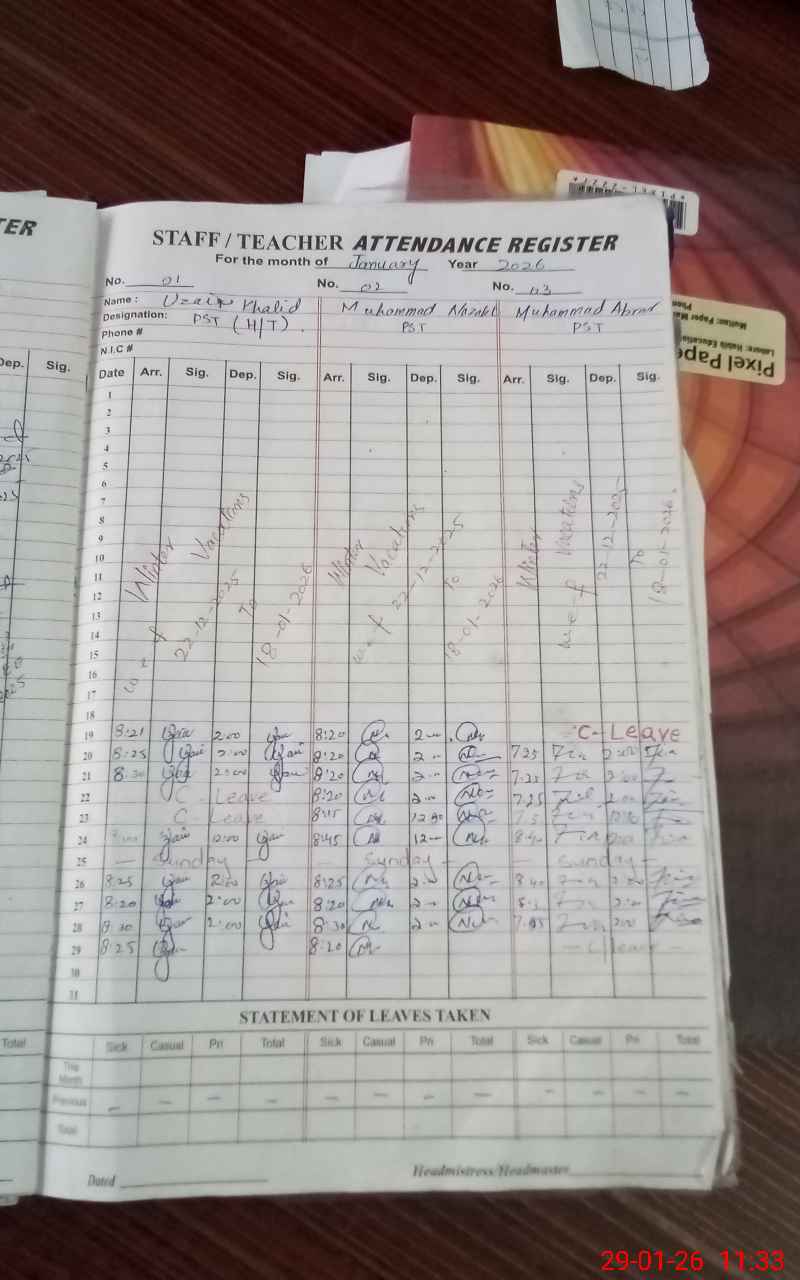 | Attendance Register | Head Teacher | MEA with School | Visit Proof |