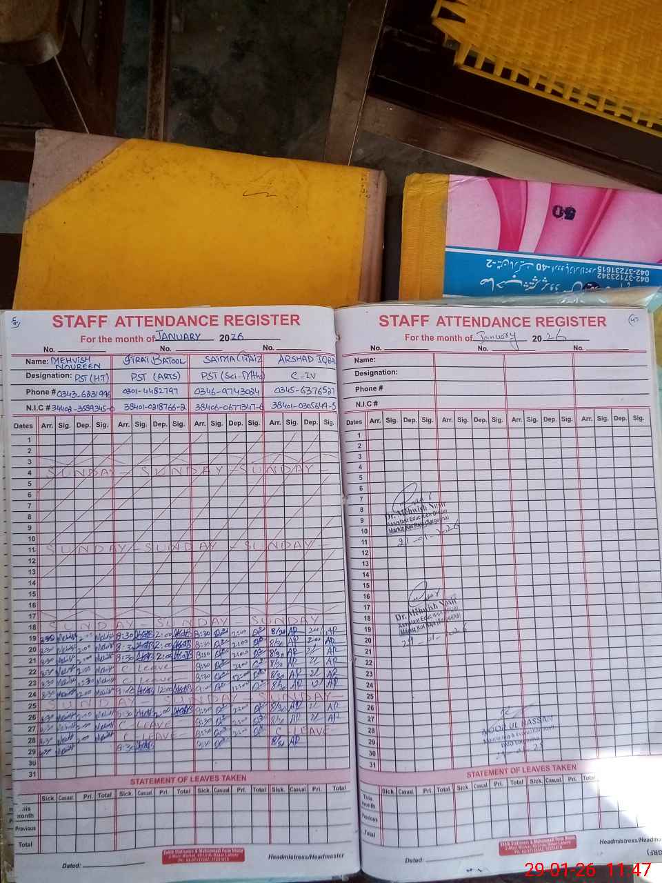 | Name: ME**** NO**** Designation: (School Headmaster's/Headmistress's) PST Phone/Cell Number: 03**** |