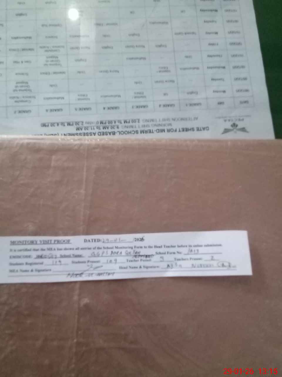 | Attendance Register | Head Teacher | MEA with School | Visit Proof |