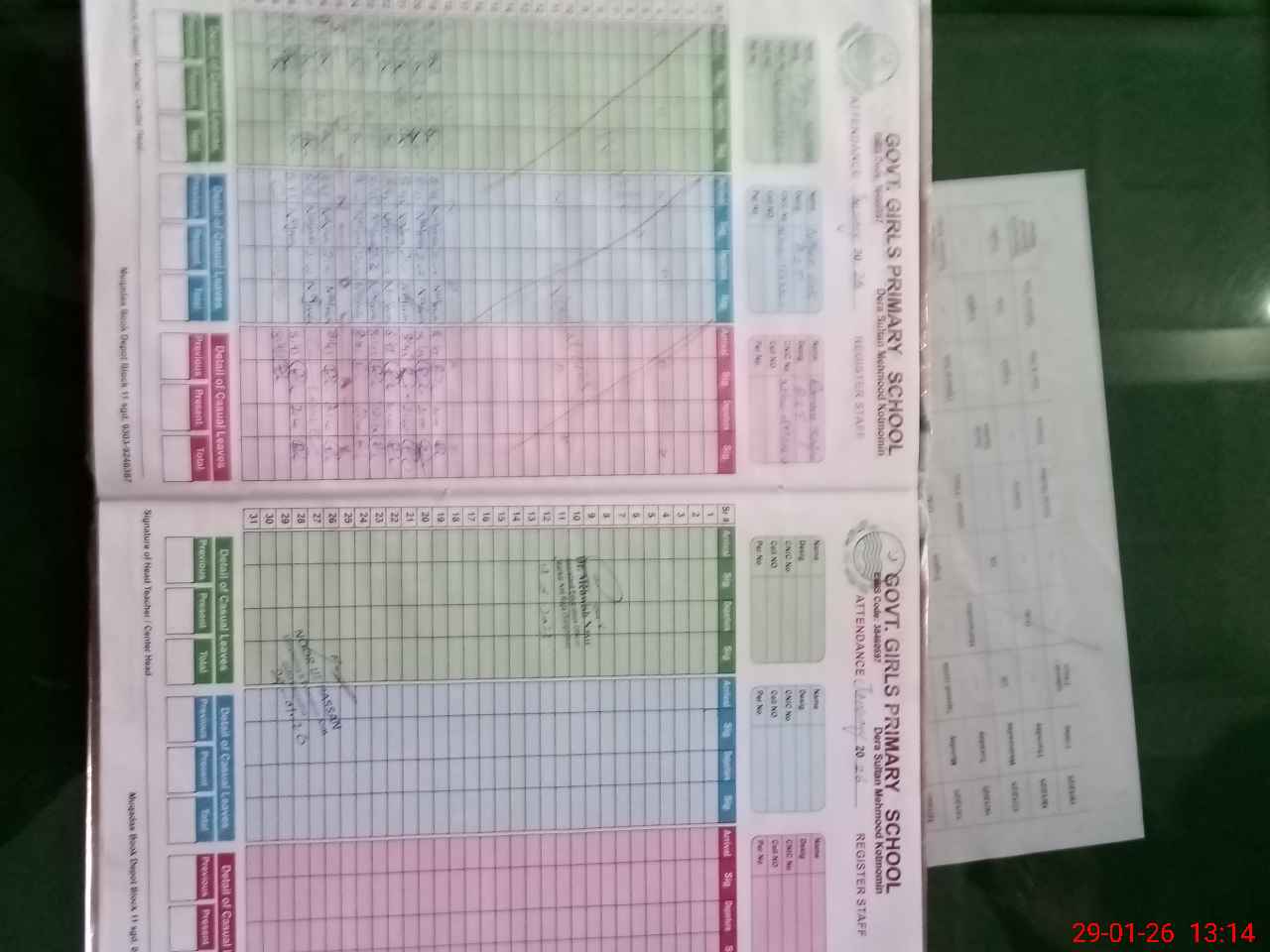 | CNIC | Full Name | Designation | R/C | Absence During Last Calender Month |