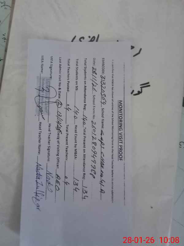 | Attendance Register | Head Teacher | MEA with School | Visit Proof |