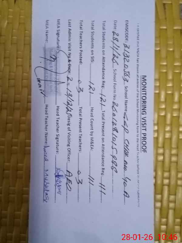 | Attendance Register | Head Teacher | MEA with School | Visit Proof |