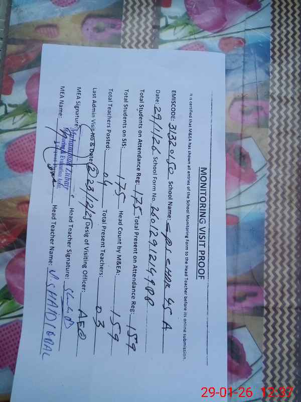 | Attendance Register | Head Teacher | MEA with School | Visit Proof |