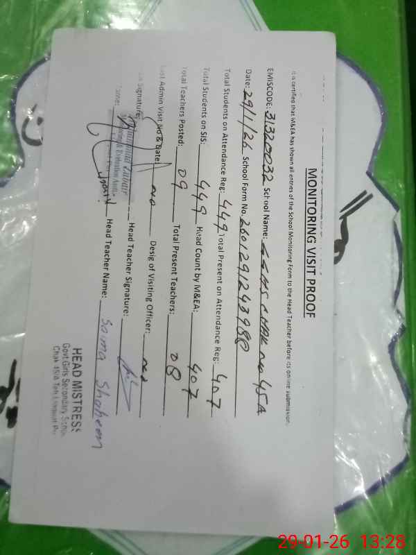 | EMIS Code: 31320032 | Name of School: GGHS CHAK NO. 45/A | |||