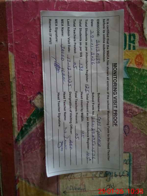 | EMIS Code: 34130189 | Name of School: GPS GORALA | |||