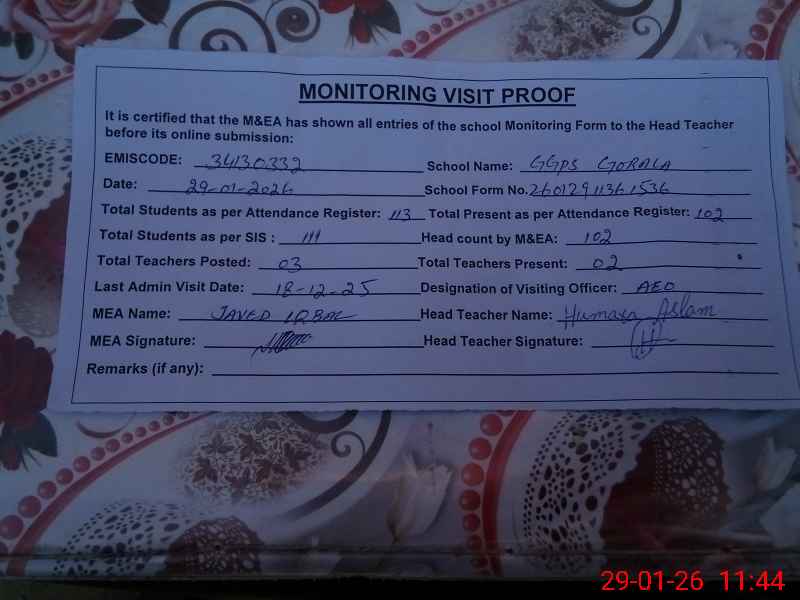 | EMIS Code: 34130332 | Name of School: GGPS GORALA | |||