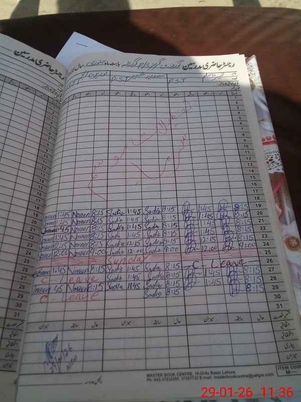 | CNIC | Full Name | Designation | R/C | Absence During Last Calender Month |
