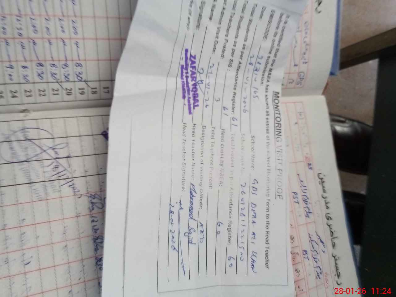 | Attendance Register | Head Teacher | MEA with School | Visit Proof |