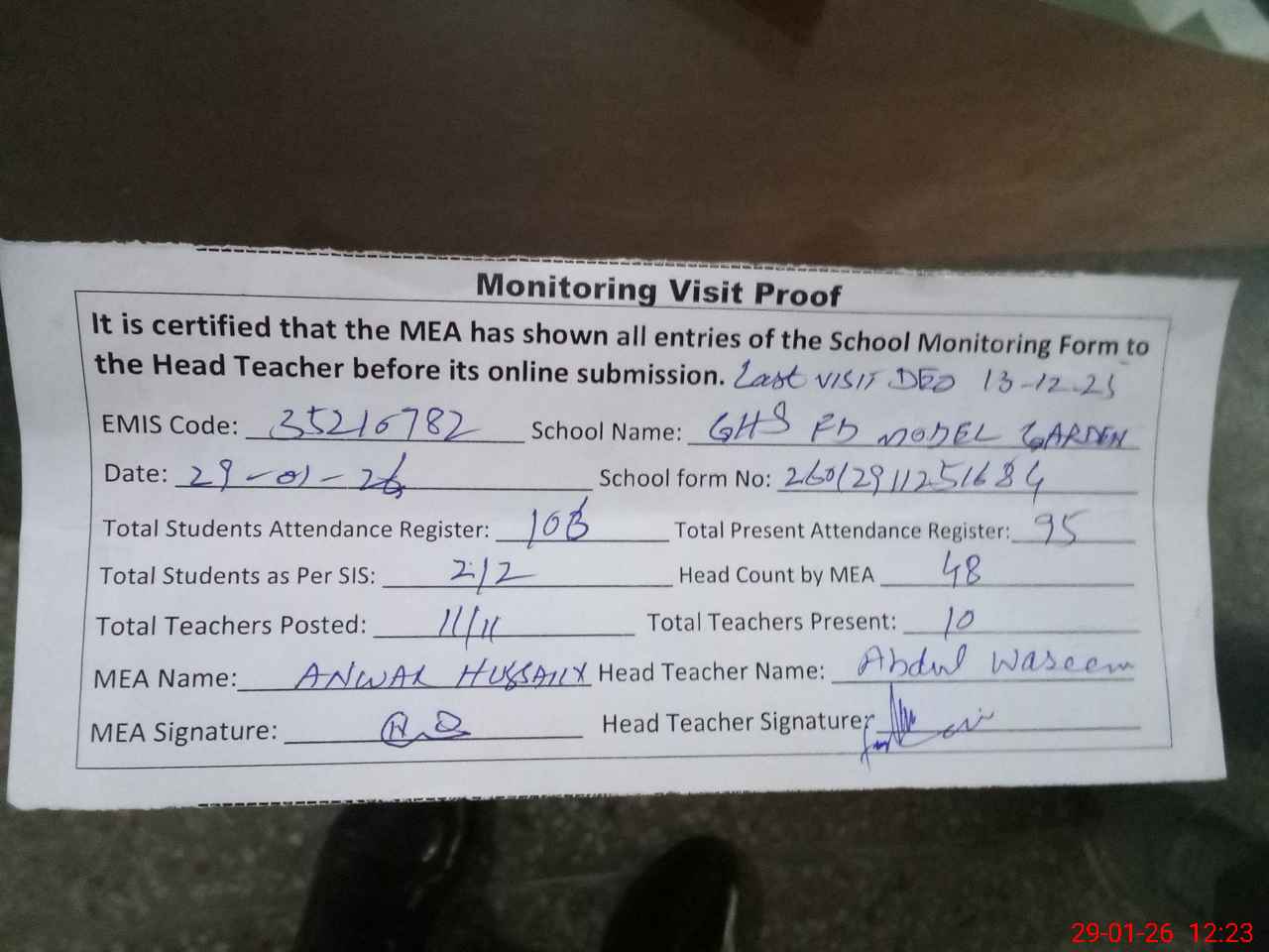 | EMIS Code: 35210782 | Name of School: GHS F.D. MODEL GARDEN TOWN | |||