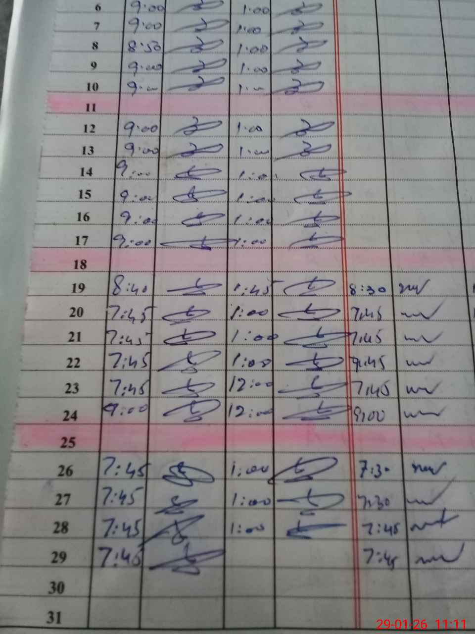 | CNIC | Full Name | Designation | R/C | Absence During Last Calender Month |