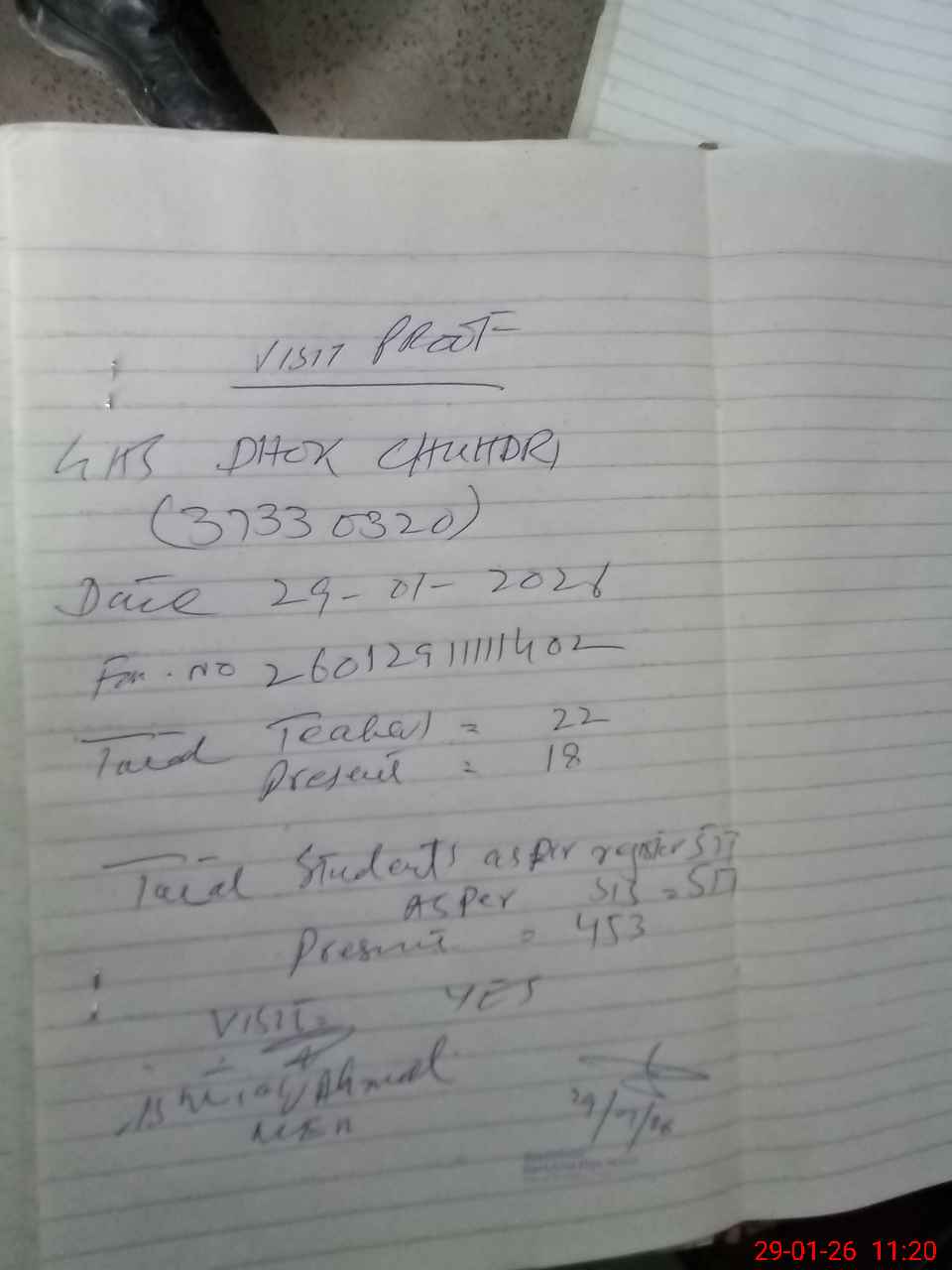 | Attendance Register | Head Teacher | MEA with School | Visit Proof |