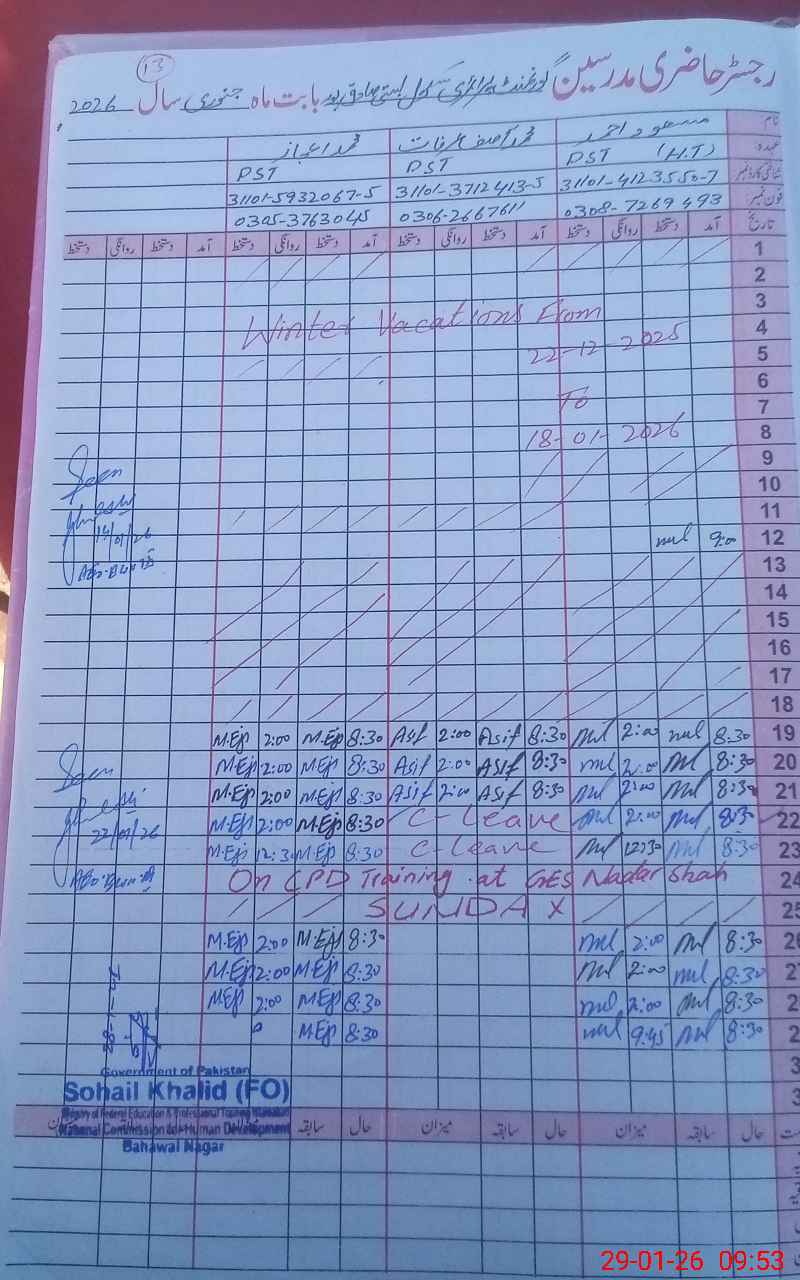 | Name: MA**** AH**** Designation: (School Headmaster's/Headmistress's) PST Phone/Cell Number: 03**** |
