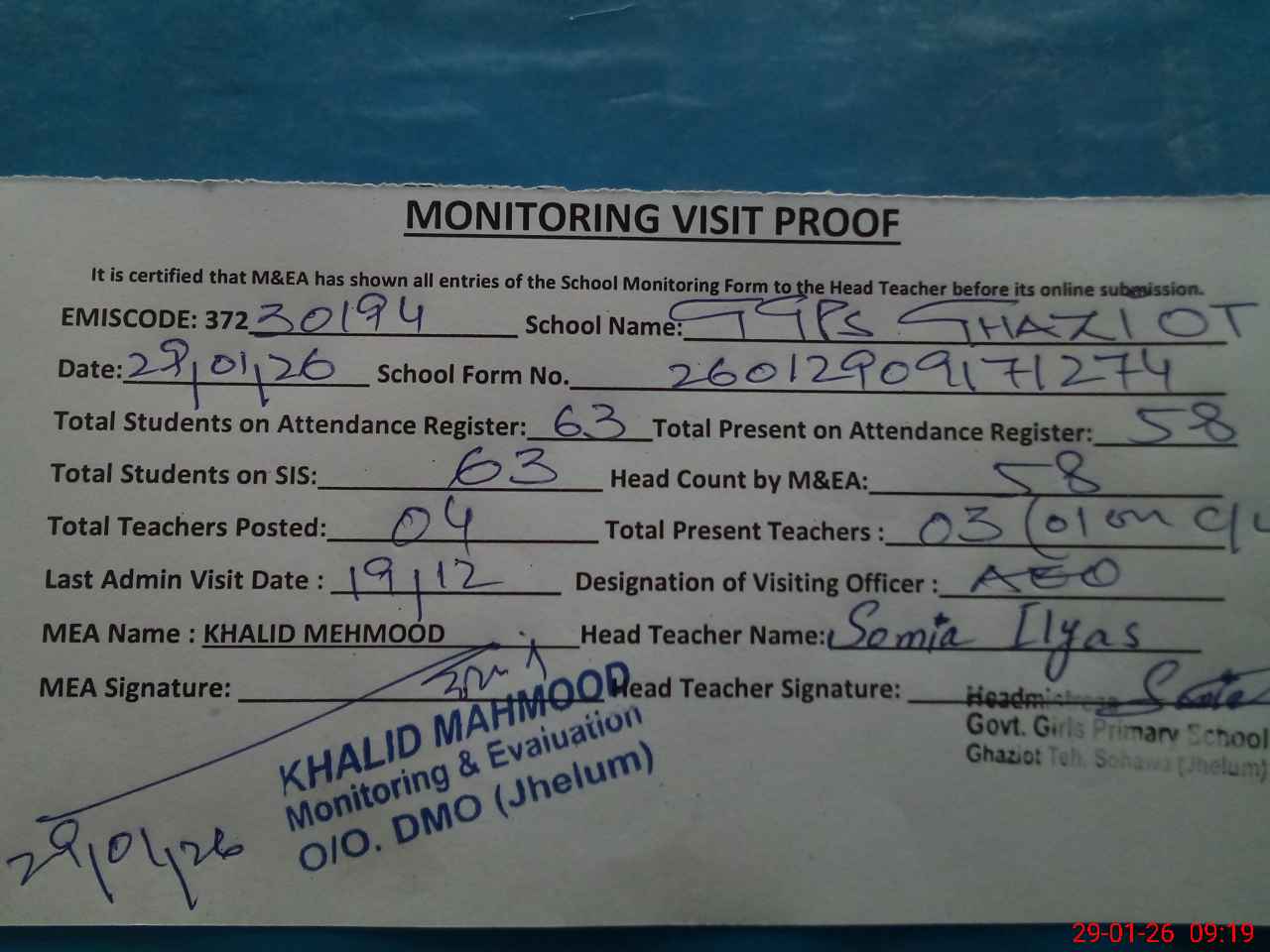 | EMIS Code: 37230194 | Name of School: GGPS GHAZIOT | |||