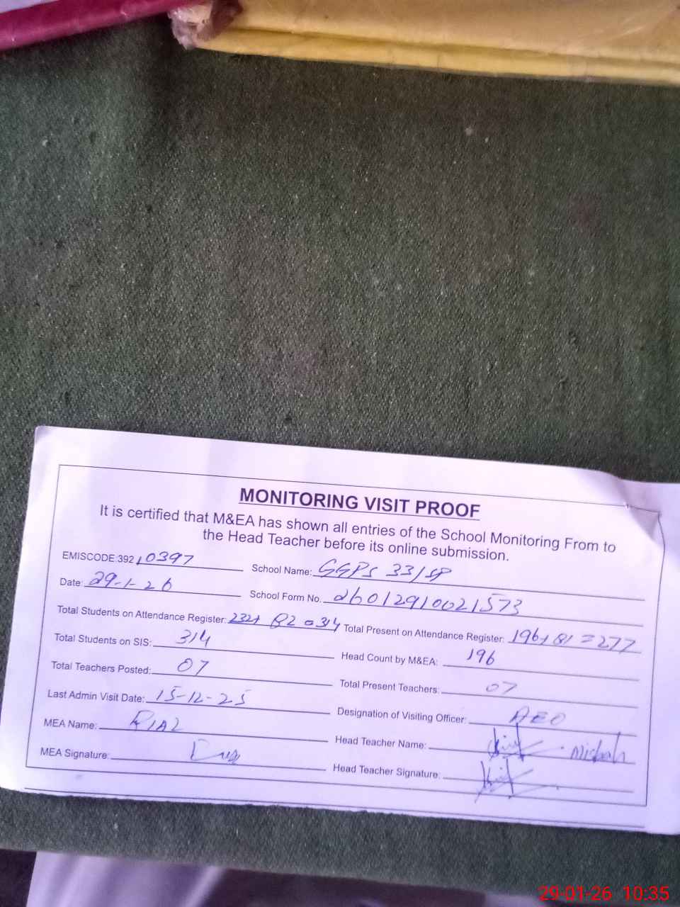 | EMIS Code: 39210397 | Name of School: GGPS 33 SP | |||