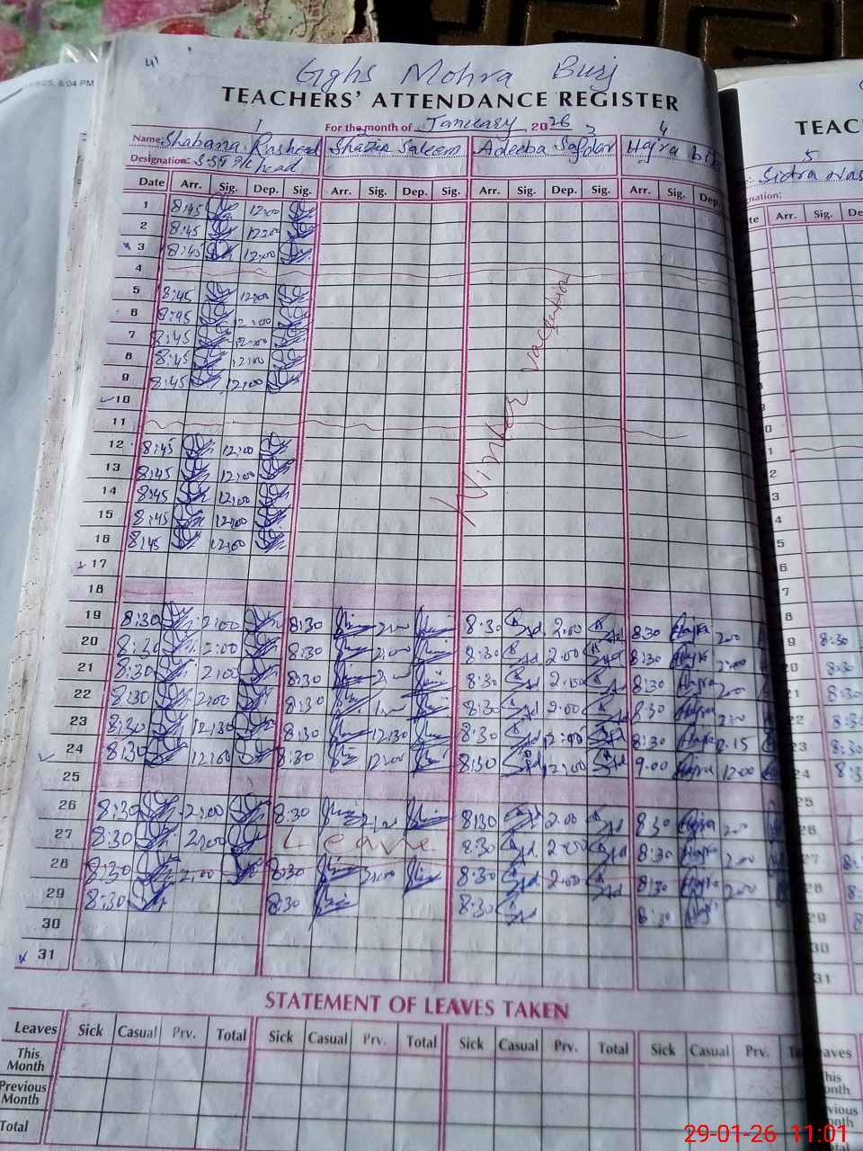 | 37**** | Sa**** Ka**** | PST Science/Maths | Regular | 0 | 0 | 0 | 0 | 0 | 0 | 0 | 0 | 0 | Casual |