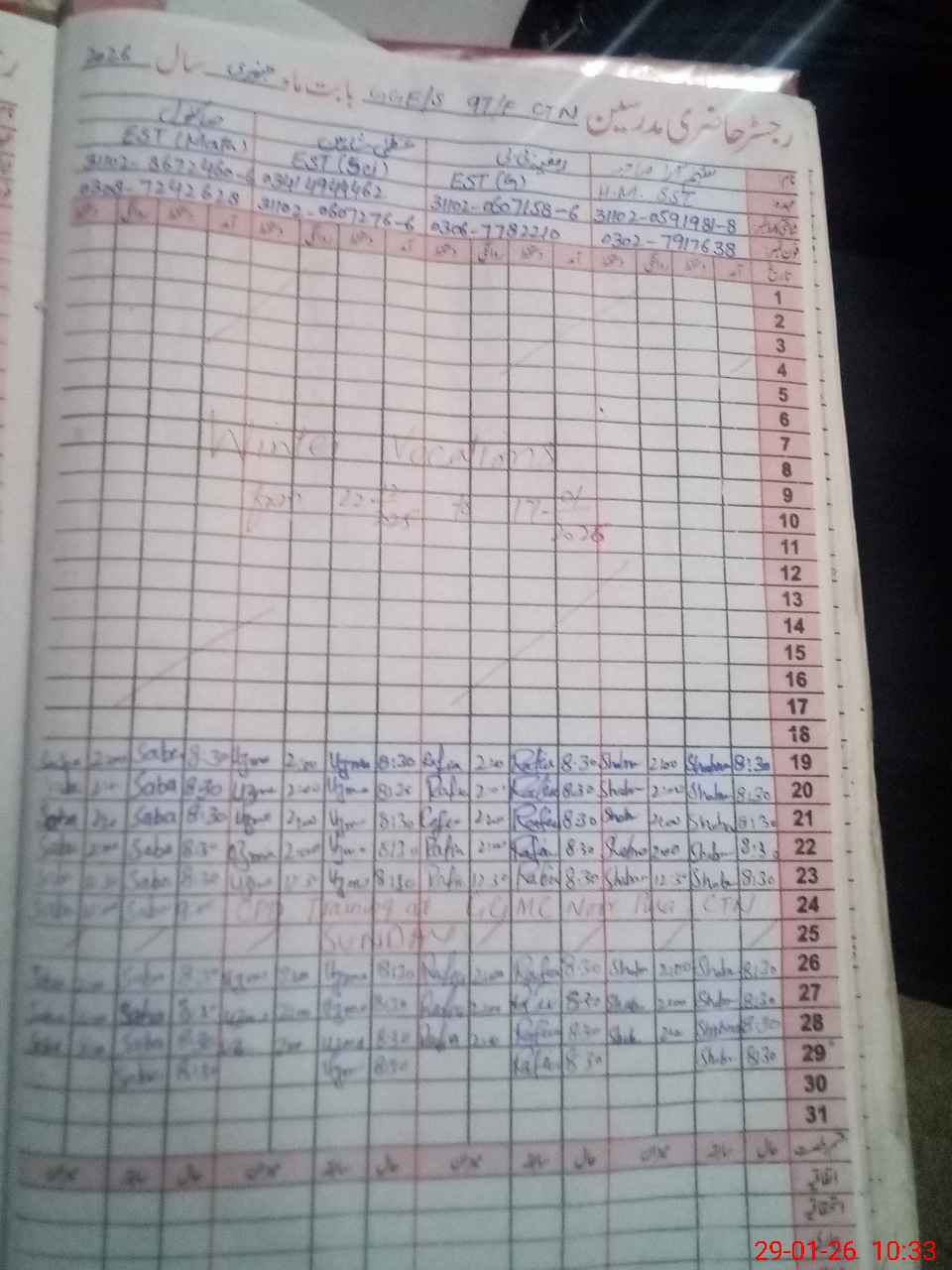 | CNIC | Full Name | Designation | R/C | Absence During Last Calender Month |