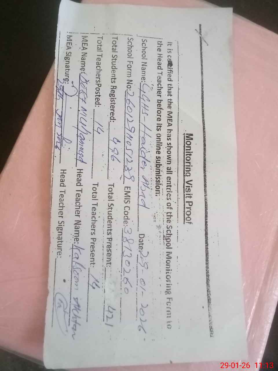 | EMIS Code: 38130260 | Name of School: GGHS HAIDER ABAD | |||