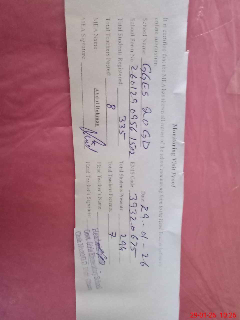 | EMIS Code: 39320675 | Name of School: GGES 20/G.D | |||
