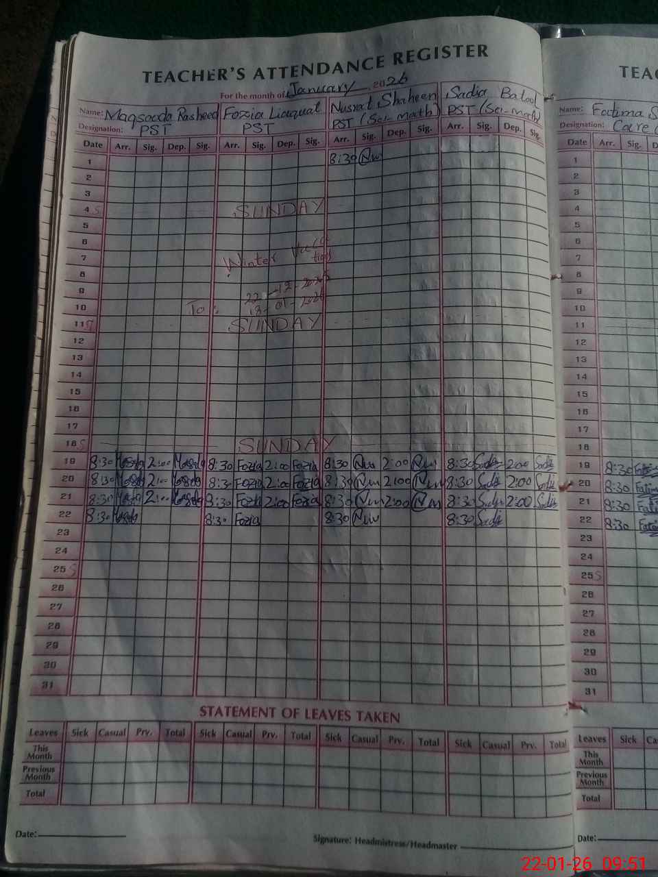 | Name: Ma**** Ra**** Designation: (School Headmaster's/Headmistress's) PST Phone/Cell Number: 03**** |