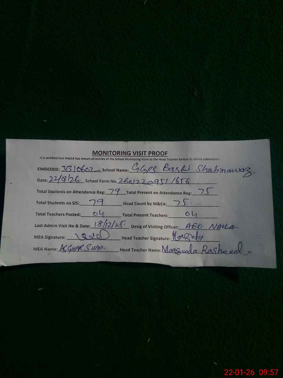 | EMIS Code: 31310602 | Name of School: GGPS BASTI SHAH NAWAZ | |||