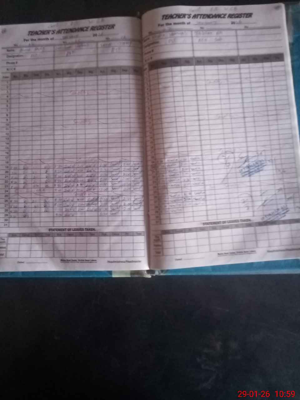 | CNIC | Full Name | Designation | R/C | Absence During Last Calender Month |