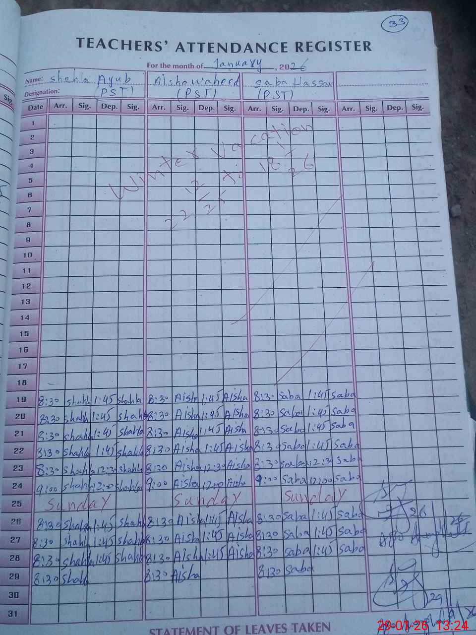 | Name: SH**** AY**** Designation: (School Headmaster's/Headmistress's) PST Phone/Cell Number: 03**** |