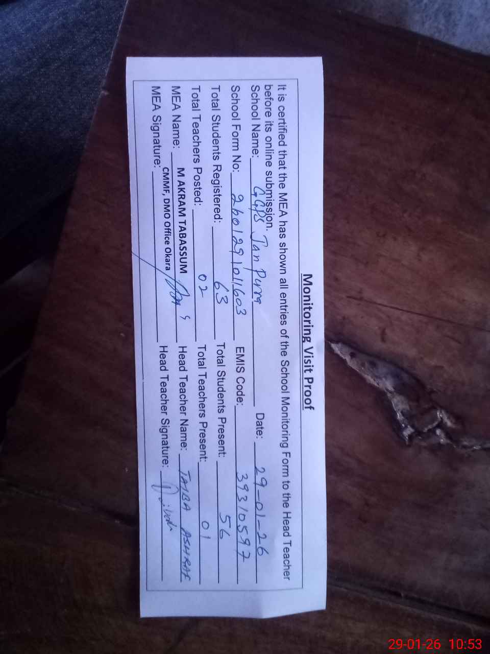 | EMIS Code: 39310597 | Name of School: GGPS JAN PURA | |||