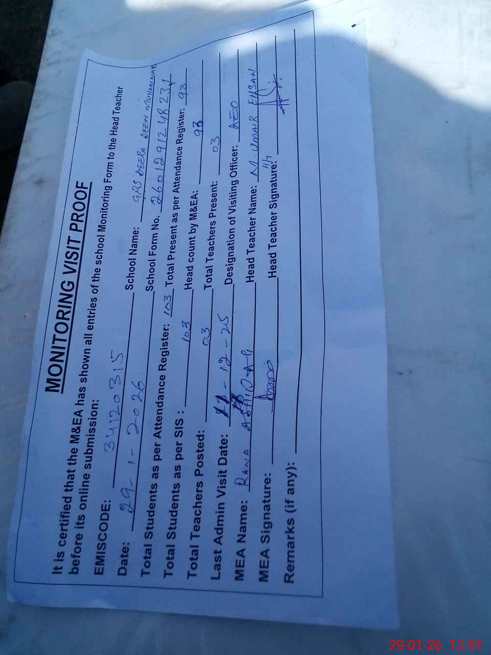 | EMIS Code: 34120315 | Name of School: GPS DERA DIN MUHAMMAD | |||