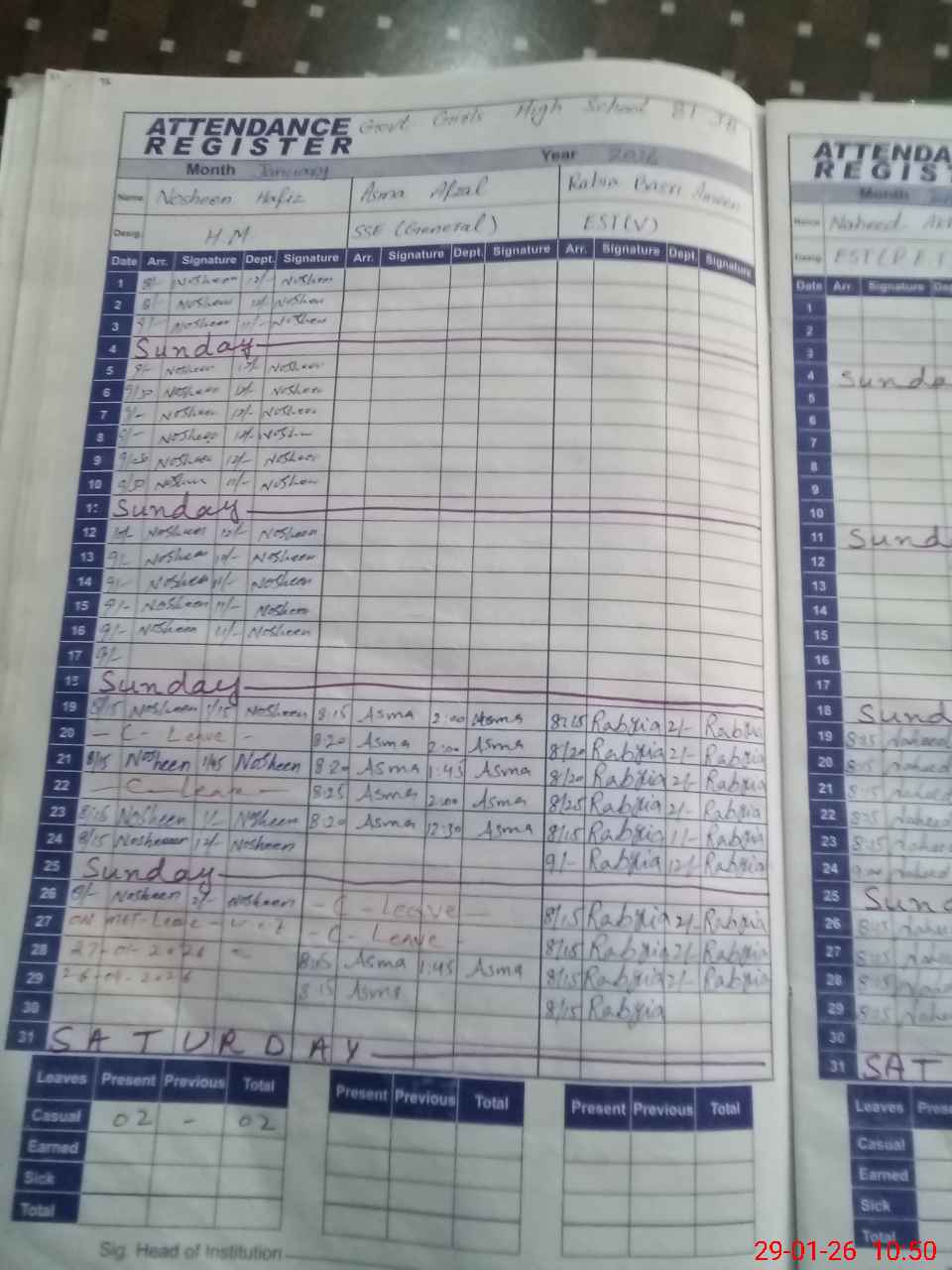 | 33**** | No**** Ha**** | HEADMASTER | Regular | 0 | 0 | 0 | 0 | 0 | 0 | 0 | 0 | 0 | Maternity |