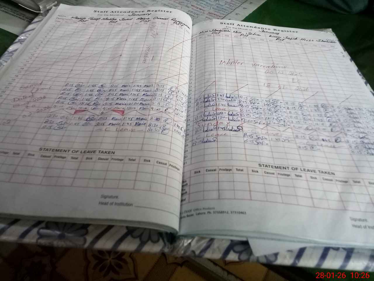 | Leave | Duty | Absent | Maternity | Medical | Ex- Pak |
