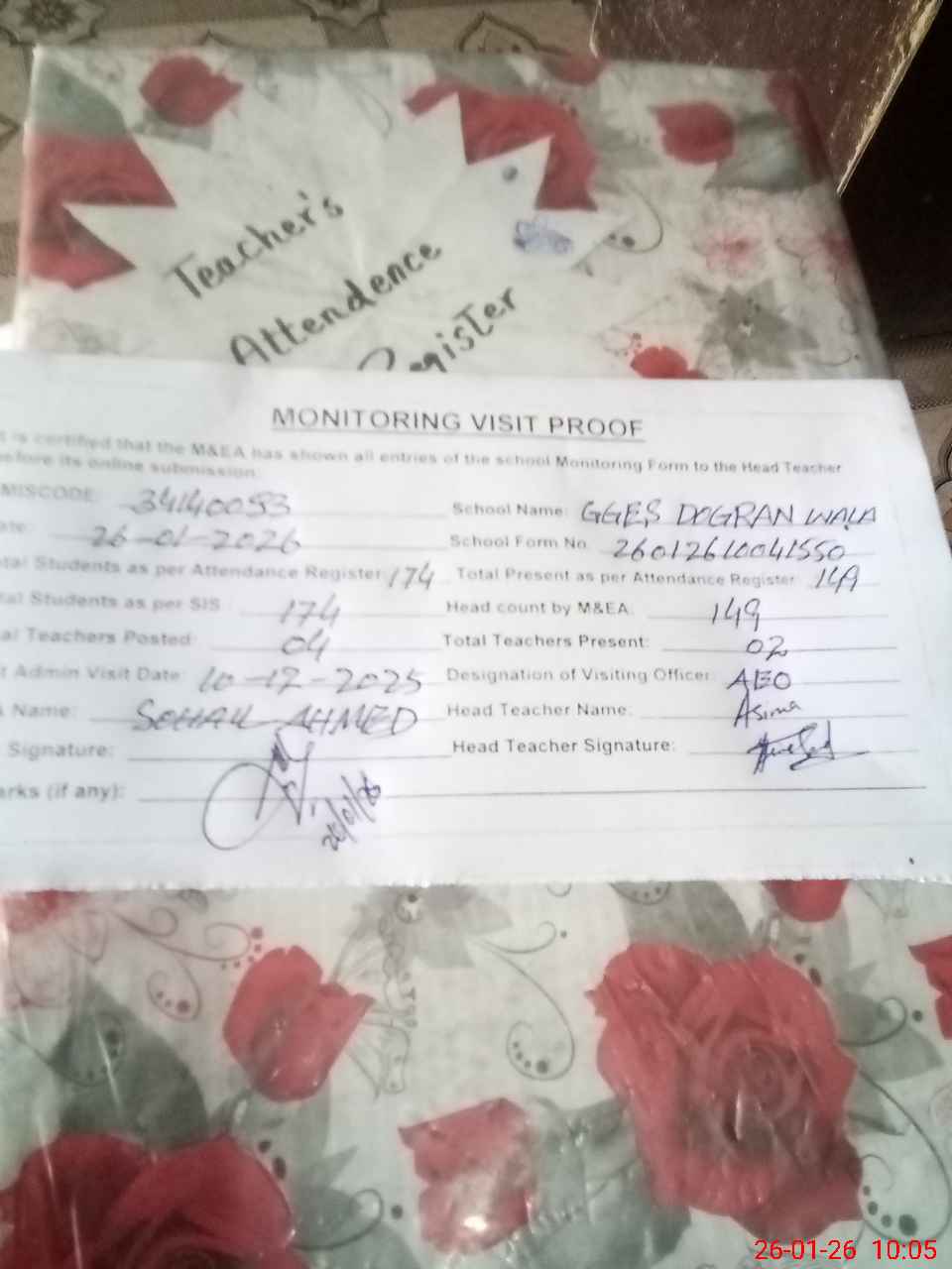 | EMIS Code: 34140053 | Name of School: GGES DOGRAN WALA | |||