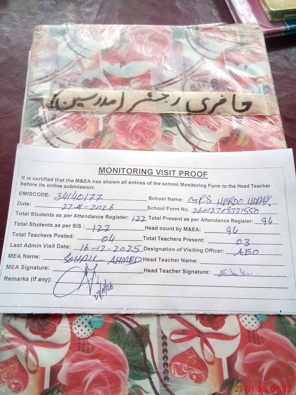 | EMIS Code: 34140177 | Name of School: GPS HERDO UDDAY | |||