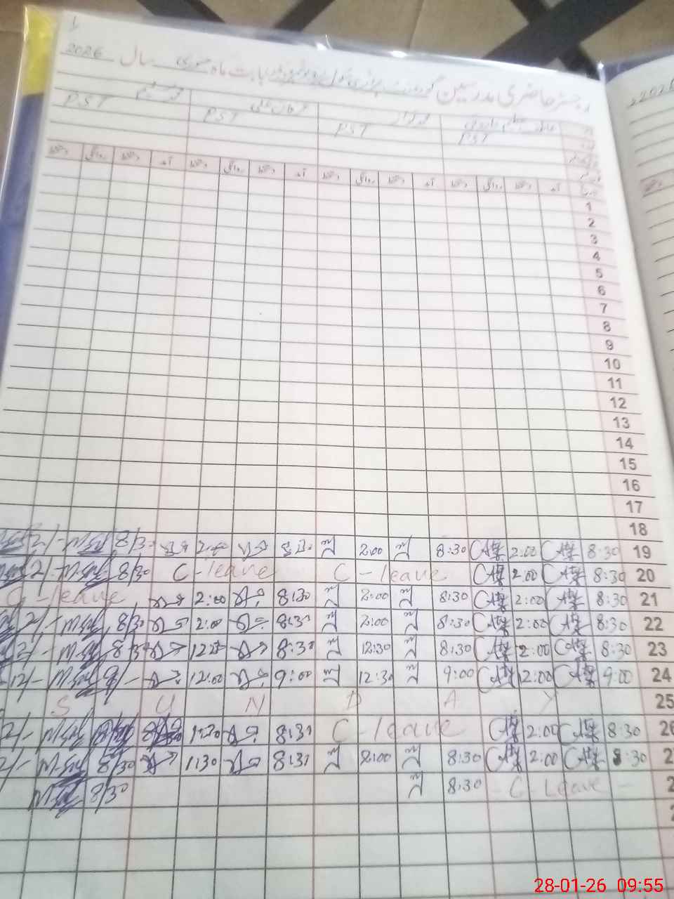 | Leave | Duty | Absent | Maternity | Medical | Ex- Pak |