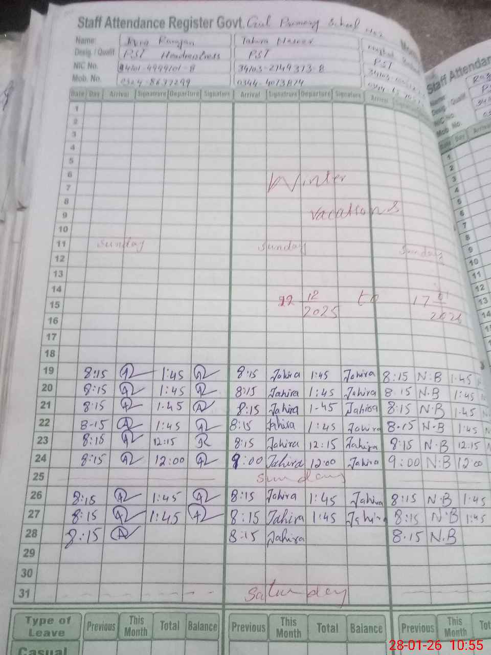 | Name: Iq**** Ra**** Designation: (School Headmaster's/Headmistress's) PST Phone/Cell Number: 03**** |