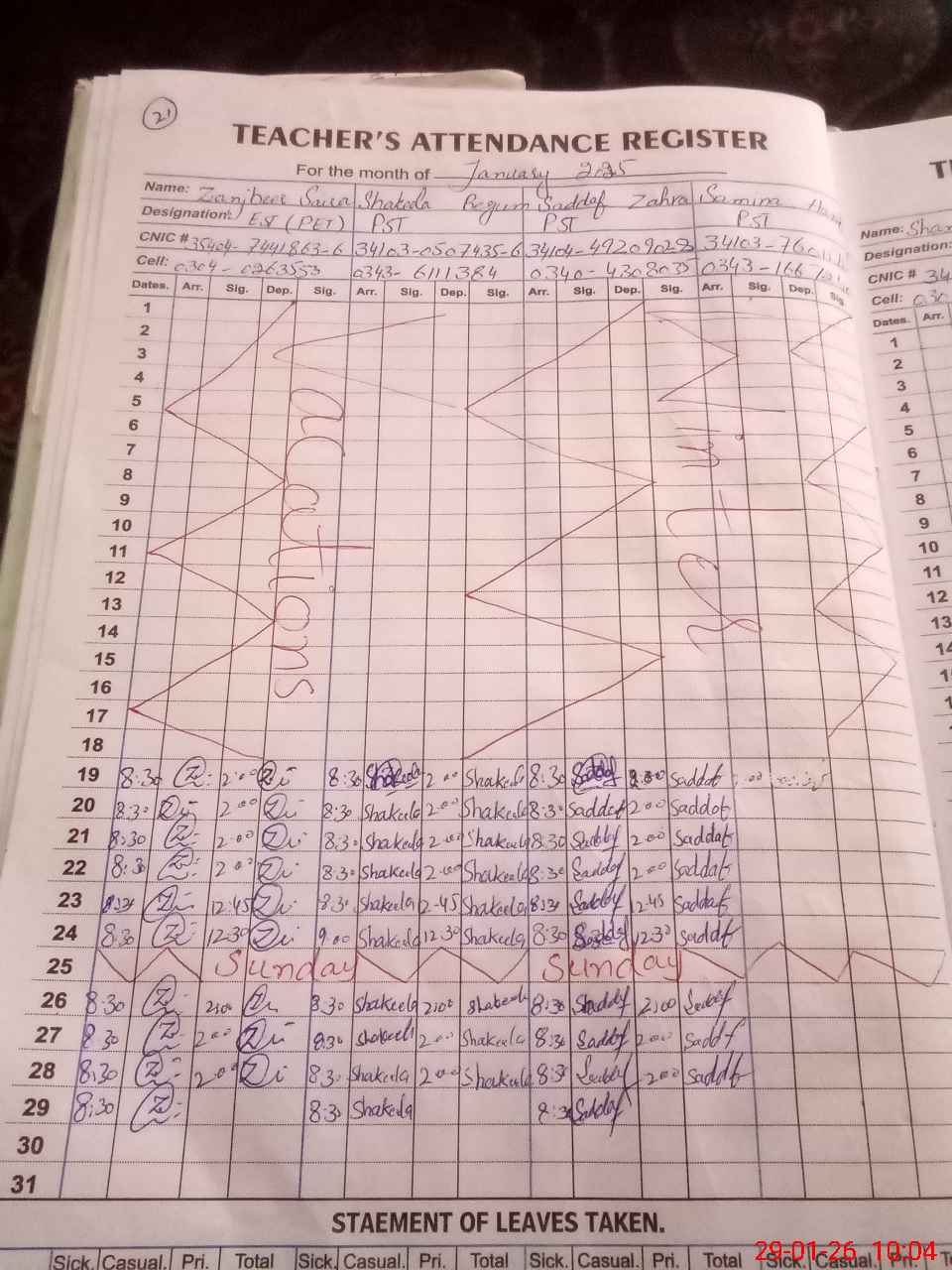 | CNIC | Full Name | Designation | R/C | Absence during last cal. month |
