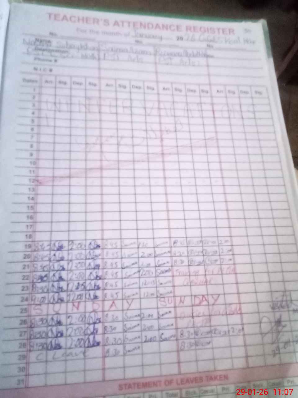 | 34**** | Nu**** Fa**** | SST Arts | Regular | 0 | 0 | 0 | 0 | 0 | 0 | 0 | 0 | 0 | Absent (Un-Authorized) |