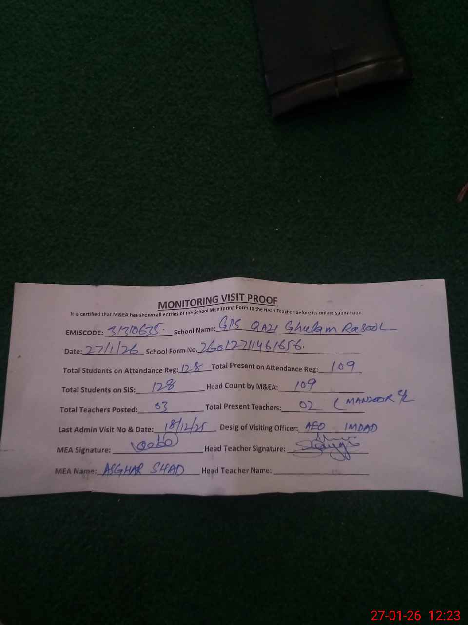 | EMIS Code: 31310635 | Name of School: GPS QAZI GHULAM RASOOL | |||