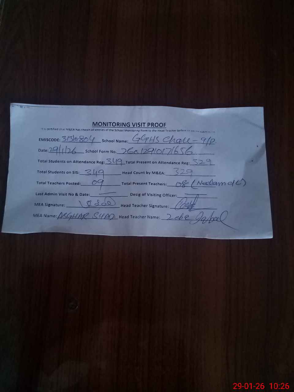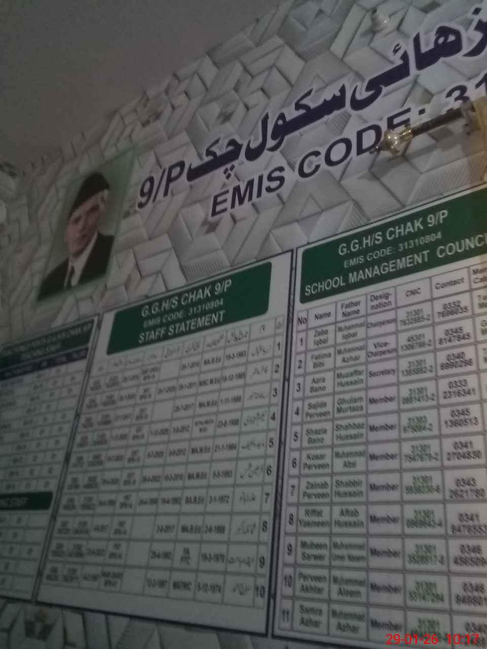 | EMIS Code: 31310804 | Name of School: GGHS CHAK NO. 9/P | |||