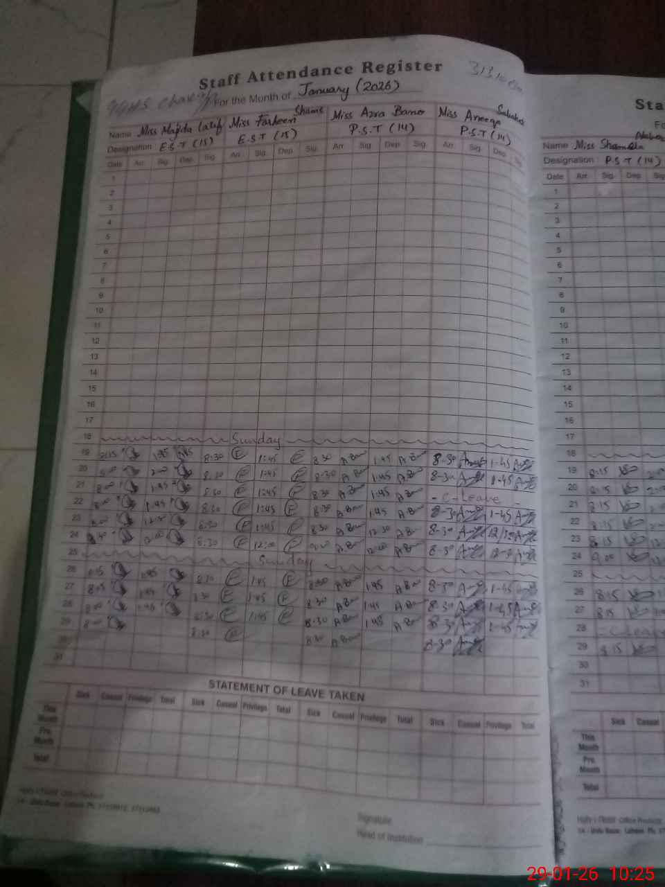 | Leave | Duty | Absent | Maternity | Medical | Ex- Pak |
