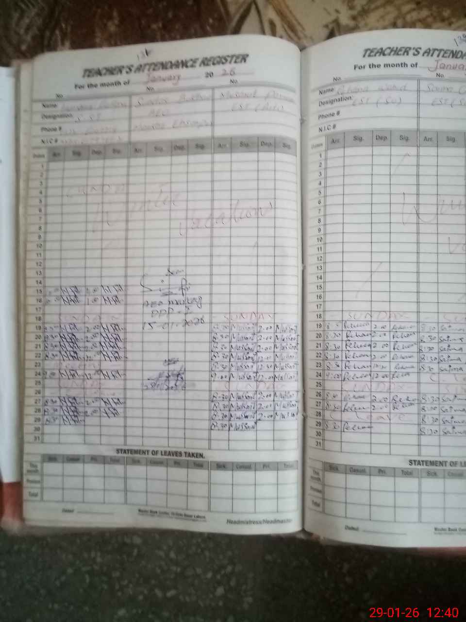 | CNIC | Full Name | Designation | R/C | Absence During Last Calender Month |