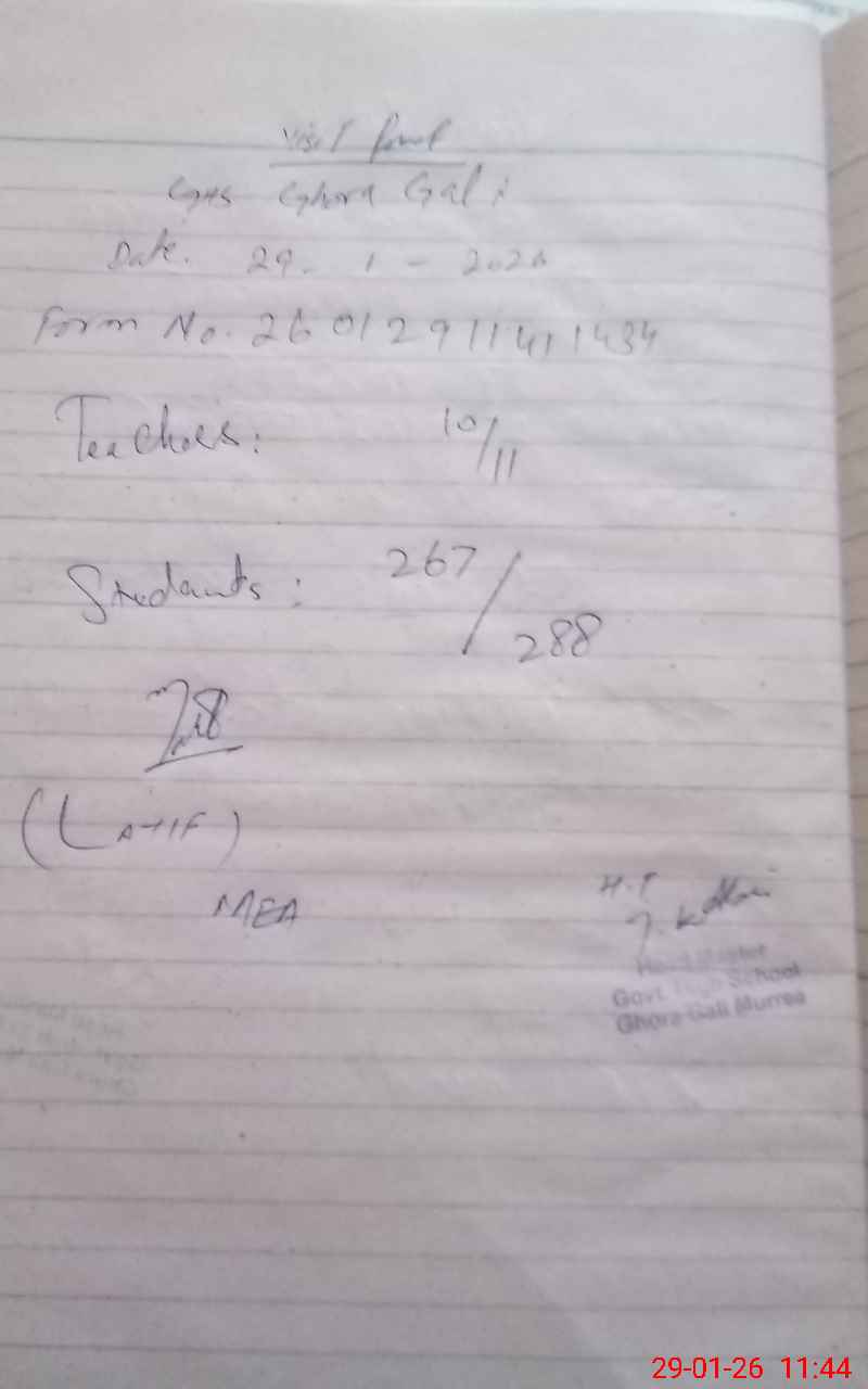 | EMIS Code: 37320005 | Name of School: GHS GHORA GALI | |||